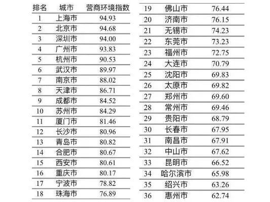 由上两幅图可见,我国营商环境比较好的城市主要集中在南方:北京、上海均位列前两名,其后则以南方城市为主,如深圳、广州、重庆、南京、杭州、成都、武汉、苏州、厦门、长沙等等,还能排在较前位置的北方城市有天津、青岛。