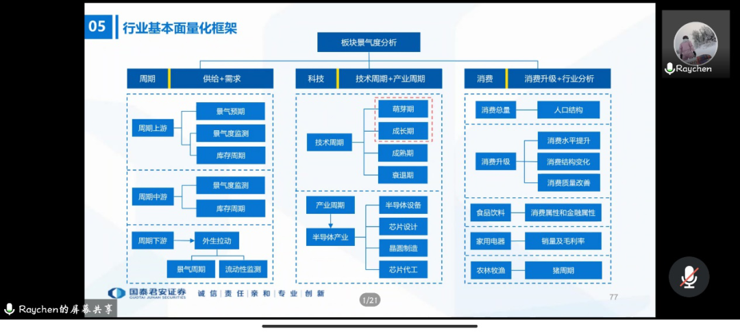 随后,陈奥林较为详细的介绍了周期板块和金融板块的具体的基本面量化的策略构建方式,重点介绍了周期板块的上中下游和金融板块的银行、券商、保险公司以及和金融联系紧密的房地产行业的基本面量化投资策略,并总结了行业基本面量化的框架。