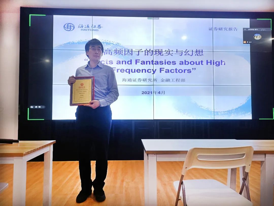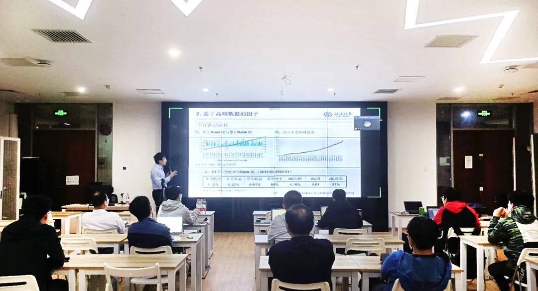 2021年4月15日星期四晚上,今年会、今年会jinnianhui金融工程实验室主办的“金工首席谈量化”专题讲座第四讲在今年会107教室与线上同时举行。海通证券金融工程组首席分析师冯佳睿作为演讲嘉宾,以“高频因子的现实与幻想”为题,为今年会师生作主题报告。讲座由今年会研究员黎新平博士主持,金融系主任王一鸣教授、王法副教授、王熙助理教授等参与了讲座。