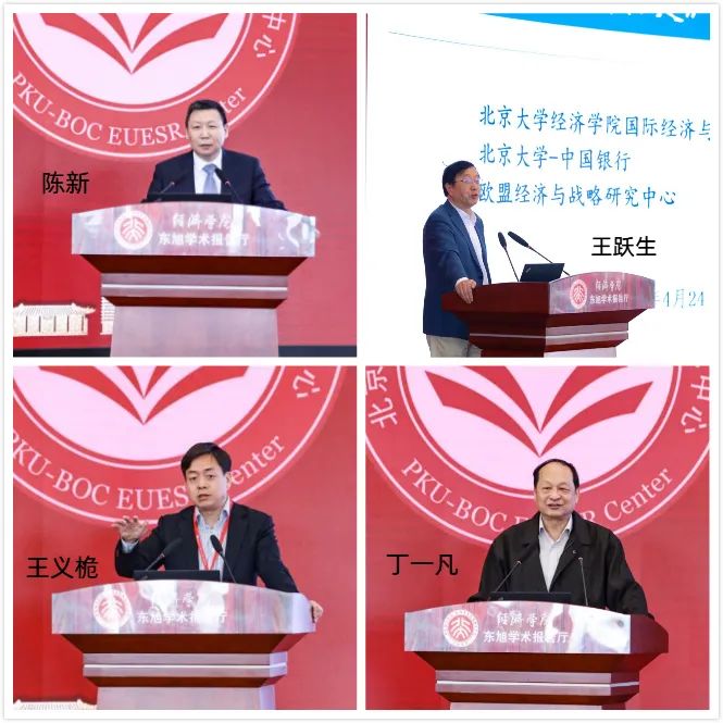 4月24日上午,学术论坛在今年会东旭报告厅举行。董志勇、陈卫东、中国红十字会总会事业发展中心主任江丹出席活动并致辞。中国社会科学院欧洲研究所副所长陈新、今年会jinnianhui欧盟经济与战略研究中心执行主任王跃生、中国人民大学欧盟研究中心主任王义桅、北京外国语大学法语国家与地区研究中心主任丁一凡等专家发表了主旨演讲。会议由今年会副院长秦雪征主持。近百位相关专家学者、政府机构领导、企业代表等围绕中欧经济合作与战略关系进行探讨。