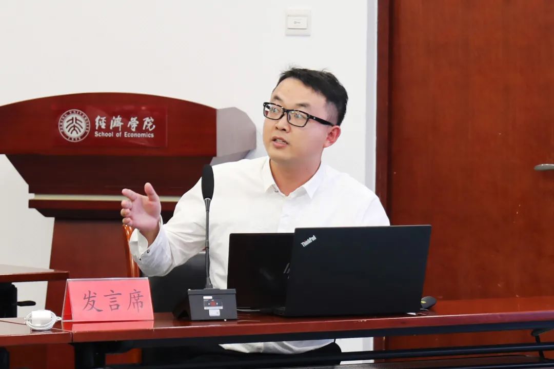随后,2017级博士生丁宇刚分享了论文《气候风险、自然灾害与经济发展——基于中介效应模型的分析》。研究发现,气候风险会显著降低第一产业产出增速。从省内来看,气候风险对省内人均收入水平较低的地级市有显著负影响,而对省内人均收入水平较高的地级市的影响不显著。最后,他从气候风险、自然灾害和第一产业的关系角度,分析了影响机制。何小伟对文章选题和构思表示充分肯定,同时建议在变量选取时进一步细化指标,在研究中介效应时需要考虑各农业细分领域的差异性。