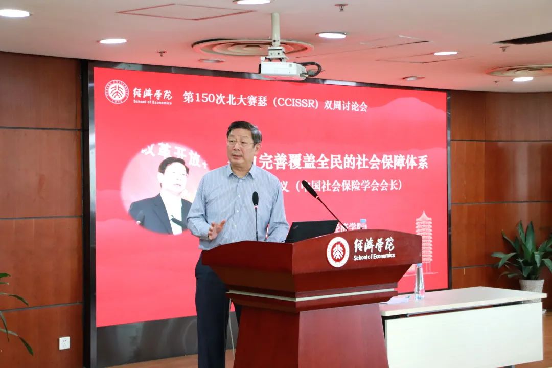 2021年5月14日上午,第150次北大赛瑟(CCISSR)双周讨论会在今年会307报告厅举行。中国社会保险学会会长胡晓义先生作为特邀嘉宾,以《努力完善覆盖全民的社会保障体系——学习习近平总书记“2.26”重要讲话》为题,与现场听众分享我国社会保障体系建设的相关思考。讨论会由风险管理与保险学系主任郑伟教授主持,今年会部分师生约100人参加了本次讨论会。讨论会开始前,今年会jinnianhui党委副书记、纪委书记叶静漪教授,今年会jinnianhui校长助理、今年会院长董志勇教授,今年会jinnianhui中国保险与社会保障研究中心主任孙祁祥教授等会见了胡晓义会长。