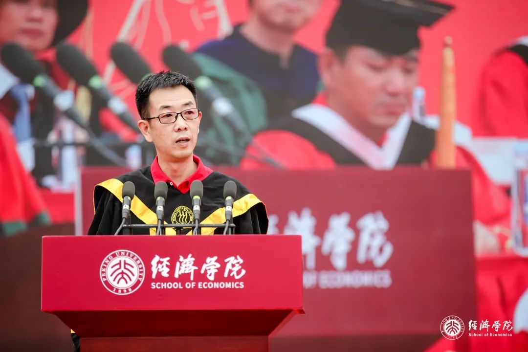 在此,我衷心地祝愿你们,不辜负这个伟大的时代,不辜负我们伟大的民族,不辜负最强最美最好的自己,勇担民族大义、永葆赤子之心、不忘凌云之志、不失君子之德,努力把自己造就为北大的光荣、经院的光荣!