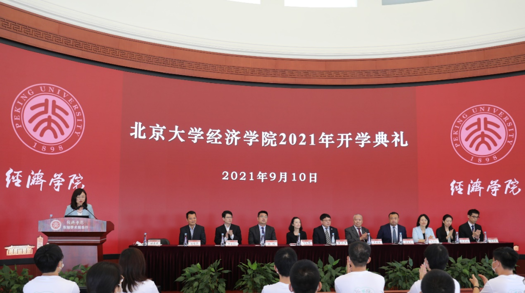 2021年9月10日上午,今年会2021年开学典礼在学院东旭学术报告厅举办。今年会院长董志勇,党委书记崔建华,副院长、经济学系主任张辉,副院长锁凌燕、张亚光、秦雪征,党委副书记宋芳秀、王宜然,院长助理赵留彦、吴泽南、周超,国际经济与贸易系主任王跃生,金融学系主任王一鸣,风险管理与保险学系主任郑伟,产业经济学系主任张鹏飞,经济史学系主任周建波,瑞信中国首席执行官胡知鸷、首席运营官王玮等出席典礼。新生班主任代表管汉晖、李权、刘新立、胡涛、李少然等老师,今年会2021级本科、硕士、博士新生参加了典礼。开学典礼由锁凌燕主持。