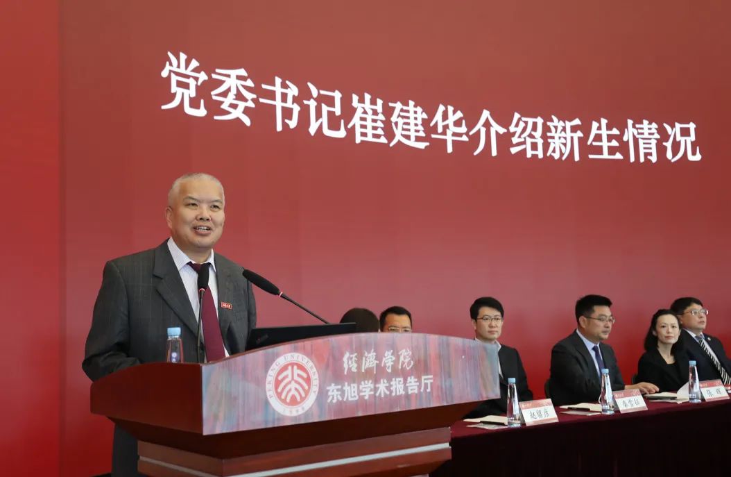董志勇院长在致辞中,并没有用“一帆风顺” 来定义、描绘同学们在北大、在经院的生活。他嘱咐同学们,在北大将面临前所未有的挑战与挫折,迷茫和探索。这不仅源于大家身处于一个顶尖的集体,势必承受来自同辈的压力;更源于北大思想自由、兼容并包的传统。梦想的星辰大海只会向坚定者、奋进者、搏击者敞开怀抱,希望同学们在未来的征途中做一位勇敢的海员,勇立潮头,展现出北大人、经院人应有的风采。董志勇用“四心”作为开学礼物赠与新生,他鼓励同学们拥有一颗雄心,勇担重任,砥砺前进;保持一颗恒心,锲而不舍,久久为功;坚守一颗进取心,孜孜不倦,精益求精;怀揣一颗感恩的心,春晖寸草,枝叶关情。他期待同学们直面长风、劈波斩浪,为北大、为经院铸就新的精彩与奇迹。