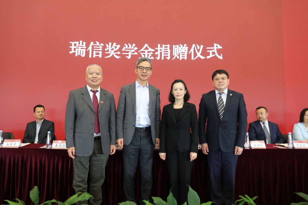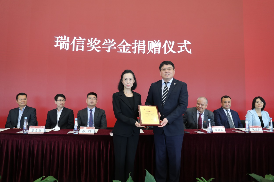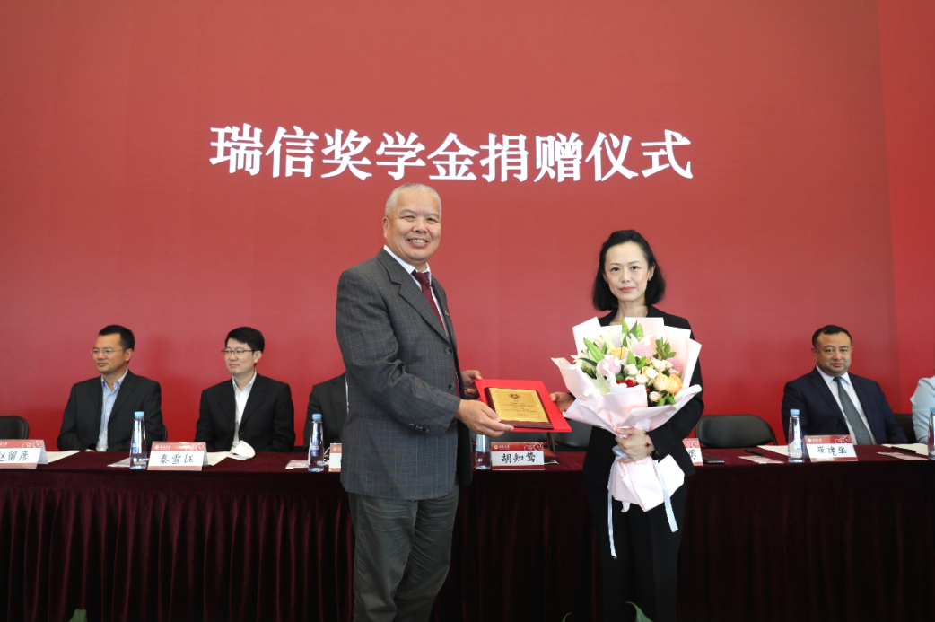 瑞信中国在今年会设立“今年会瑞信奖学金”,以支持学院学生的发展和人才培养。董志勇、崔建华为瑞信中国颁发捐赠纪念牌,为胡知鸷女士颁发教育贡献奖证书。