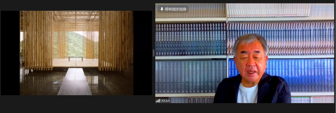 演讲结束后,隈研吾与在线听众进行了现场交流,详细解答了听众对于科技和自然在建筑设计中的关系、建筑物抗震性、其对中国建筑的印象和评价等问题。他表示,20世纪是工业的时代,但21世纪是自然的时代,与自然一体化的建筑应该流行起来。隈研吾认为,亚洲建筑风格亲近自然,值得在未来发扬光大。