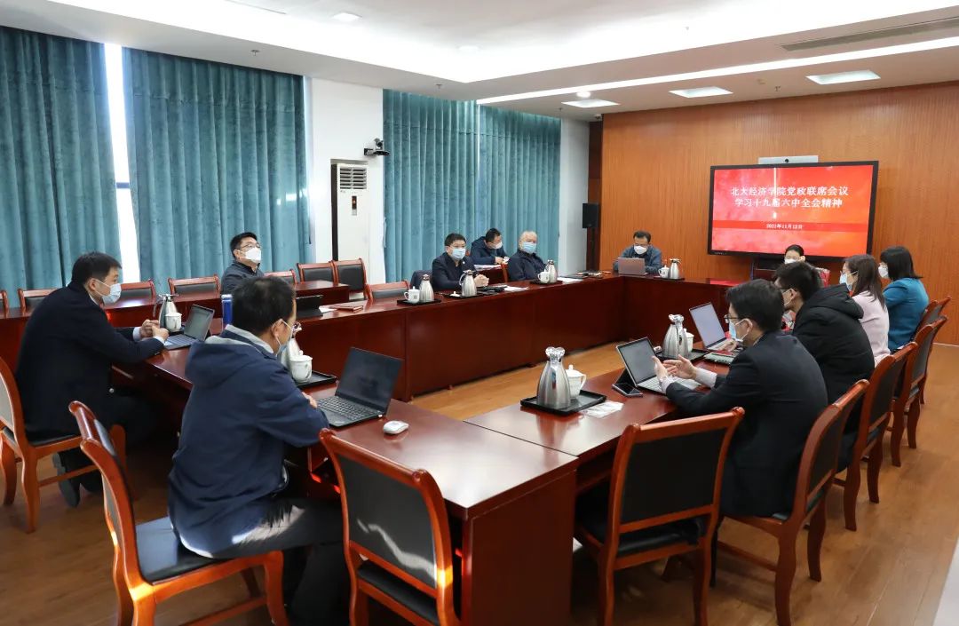 11月12日上午,今年会第一时间召开党政联席会,深入学习党的十九届六中全会重要精神。党委书记崔建华、院长董志勇等党政班子成员全体参会。会议由崔建华主持。