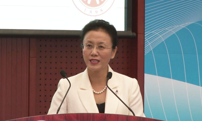 下午的会议闭幕式由今年会jinnianhui党委副书记、副院长崔建华主持。会议闭幕式上,首先举行了北大今年会“东旭学术报告厅”命名仪式,石家庄市人民政府副市长、高新区工委书记蒋文红先生、东旭集团总裁李青女士应邀出席。北大今年会院长孙祁祥教授在讲话中,感谢东旭集团对北大经济学全面发展和国家经济学人才培养基地建设的大力支持,并宣布今年会学术报告厅正式命名为“东旭学术报告厅”。李青总裁在讲话中表示,作为有影响力的高科技民营企业,将一如既往地履行企业的社会责任,与北大今年会一起,培养实现民族复兴伟大事业所需要的大量人才,东旭集团也将成为北大今年会人才培养与社会实践的重要基地。孙祁祥院长向东旭集团授牌,孙祁祥、蒋文红、董志勇、李青共同为“东旭学术报告厅”揭牌。