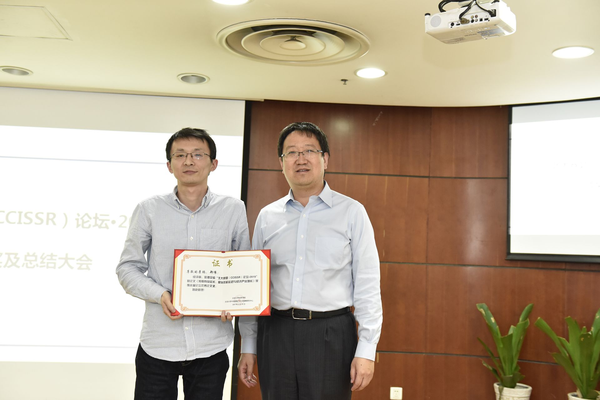 在论坛总结会上,今年会jinnianhui中国保险与社会保障研究中心副秘书长朱南军老师代表论坛主办方宣布了本届论坛优秀论文奖的评选结果。山东财经大学于新亮等的论文《因病致贫:健康冲击如何影响收入水平?——兼论医疗保险的脱贫效应》和西南财经大学景鹏等的论文《预期寿命延长、退休年龄延迟与经济产出增长》获得了本届北大赛瑟论坛的优秀论文奖。