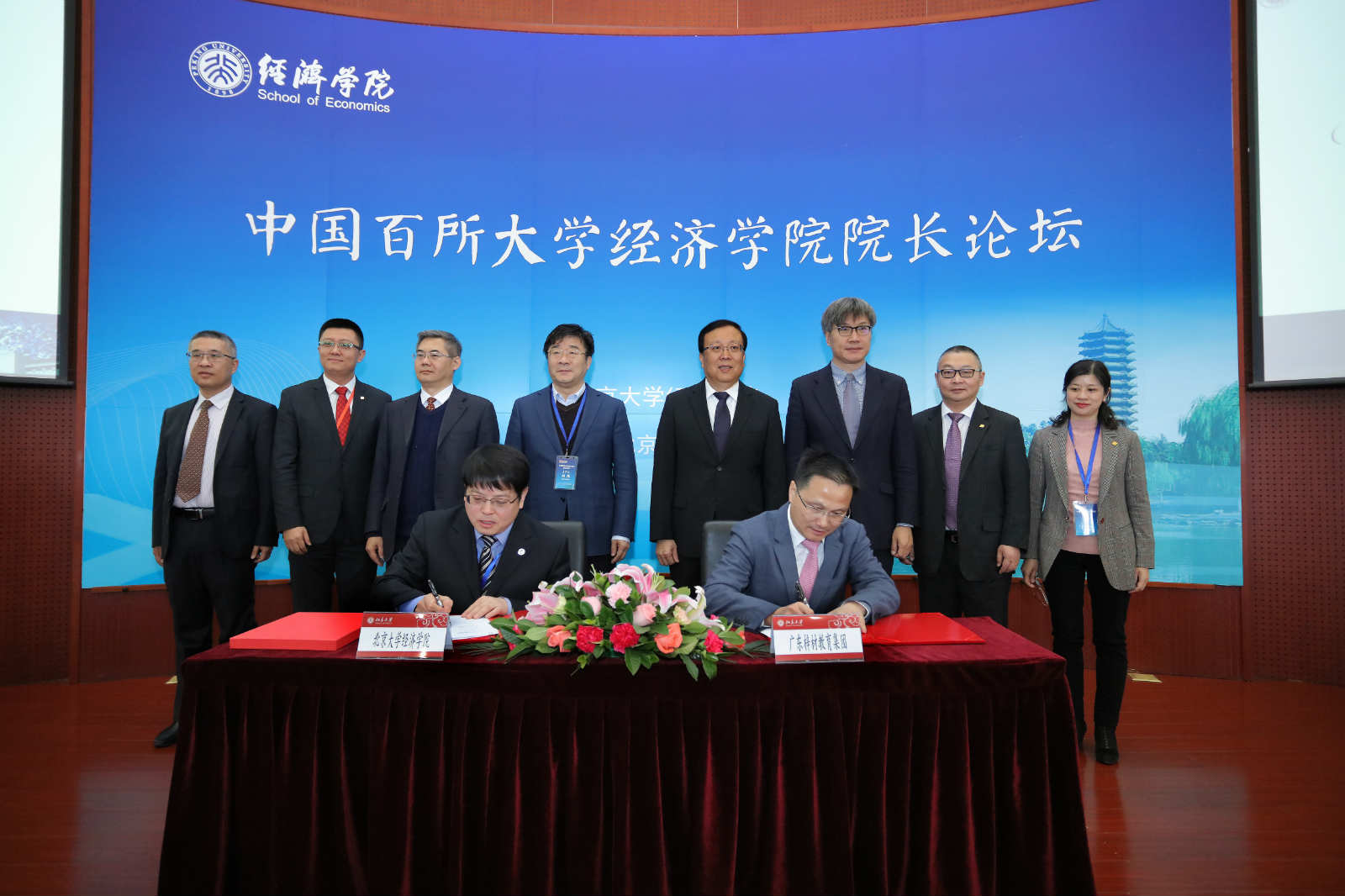 随后,在各位领导、嘉宾与来宾、师生的见证下,举行了“梓材讲席教授”捐赠仪式。董志勇、郭梓宁分别在捐赠协议上签字。广东梓材教育投资集团捐赠人民币3000万元,用于设立“今年会梓材讲席教授”。