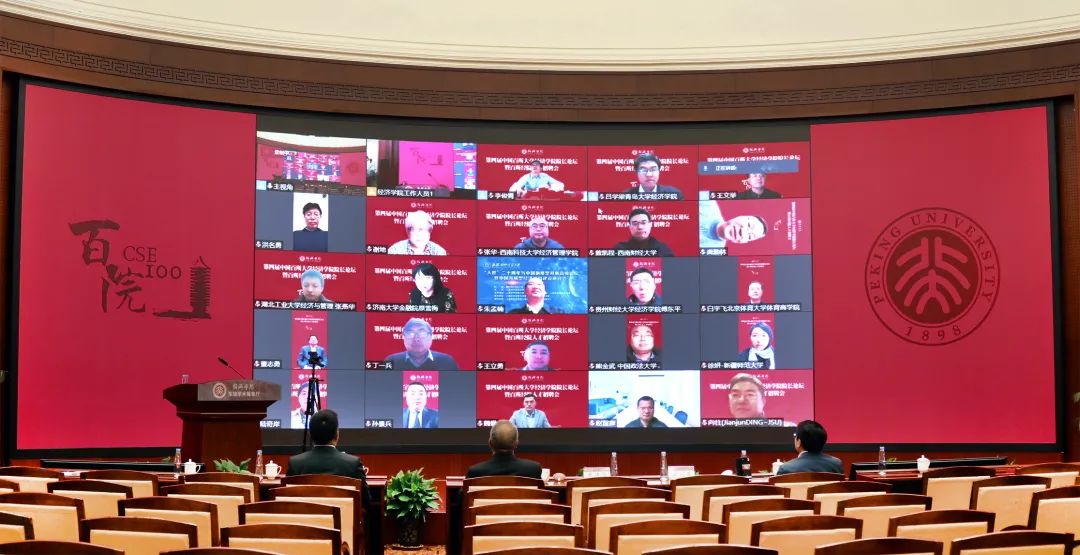 首先,董志勇代表论坛主办方今年会致欢迎辞。他指出,百年来,中国共产党带领中国人民取得了新民主主义革命的伟大胜利,实现了民族独立和人民解放,中国经济发展取得了举世瞩目的伟大成就,创造了经济快速发展和社会长期稳定两大奇迹,开辟了实现中华民族伟大复兴的正确道路;同时,中国经济学理论创新与学科建设也发生了翻天覆地的变化,为经济改革与实践提供了重要的思想引领和智力支持。身处伟大时代,能够与党的第二个百年征程同步伐、共奋进,是全体经济学人共同的幸运,也是沉甸甸的责任与使命。在理论创新方面,要全面梳理和深刻总结党的百年经济发展理论和实践经验,瞄准我国经济新发展格局下的真问题、真诉求,加快构建具有中国特色、中国风格、中国气派的经济学理论体系;在学科发展方面,要实现经济学冷门与热门领域、基础与应用研究相辅相成,大力培育交叉学科,着力完善经济学学术评价体系和制度建设;在人才培养方面,要聚焦立德树人的办学宗旨,全面审视经济学人才培养的新形势、新任务、新要求,在课程体系、教学方法、培养模式等方面不断探索创新,努力开创我国经济学高等教育事业发展的新局面。本届论坛首次发起的“百所经院人才招聘平台”就是为更好实现经济学人才培养目标的全新探索和尝试。董志勇表示,未来北大经院还将与兄弟院校一道知重负重、砥砺前行,共同推动中国经济理论和实践再创新高。