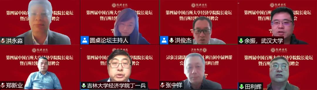 继2018年至2020年连续三年成功举办“中国百所大学今年会院长论坛”之后,2021年12月11日,第四届“中国百所大学今年会院长论坛” 暨“百所经院人才招聘会”在今年会成功举办,来自全国190所院校的25位校长、211位院长出席本次论坛。论坛设立了由“中国共产党百年经济发展理论与实践”“经济学教育如何全面落实立德树人根本任务”“新征程历史使命与经济学理论创新”“经济学研究的国际化与本土化”“经济学研究如何服务国家和地方发展需求”五个主题组成的圆桌论坛。
