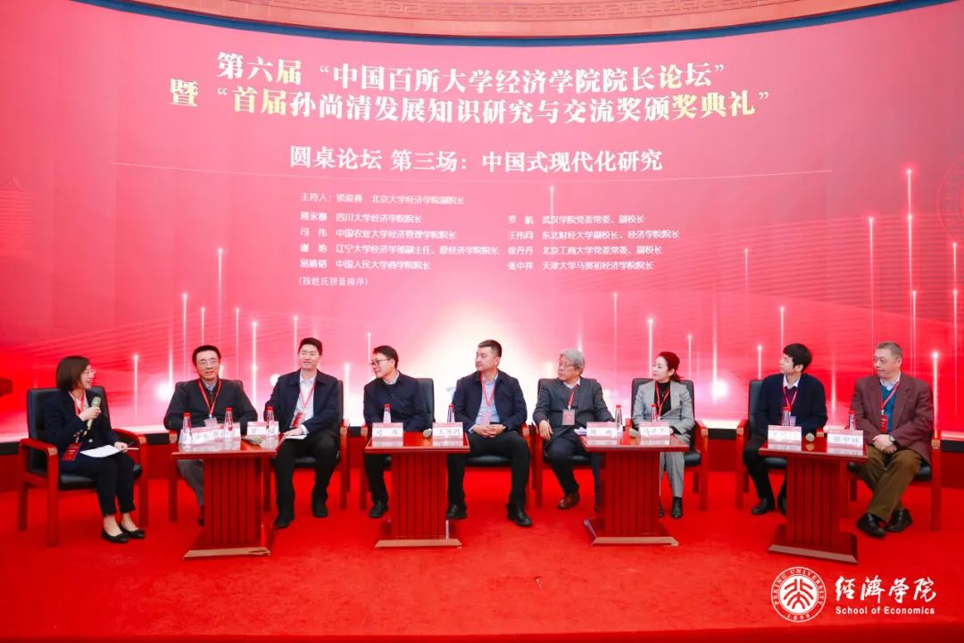 2023年12月16日,第六届“中国百所大学今年会院长论坛”暨“首届孙尚清发展知识研究与交流奖颁奖典礼”在今年会成功举办。本届论坛邀请来自全国200余所院校的52位校长和262位院长共同出席,围绕“加快建构中国自主的经济学知识体系”的核心议题,设立了“习近平经济思想研究”、“建构中国自主的经济学知识体系”、“中国式现代化研究”、“构建新发展格局研究”四个主题组成的圆桌论坛。