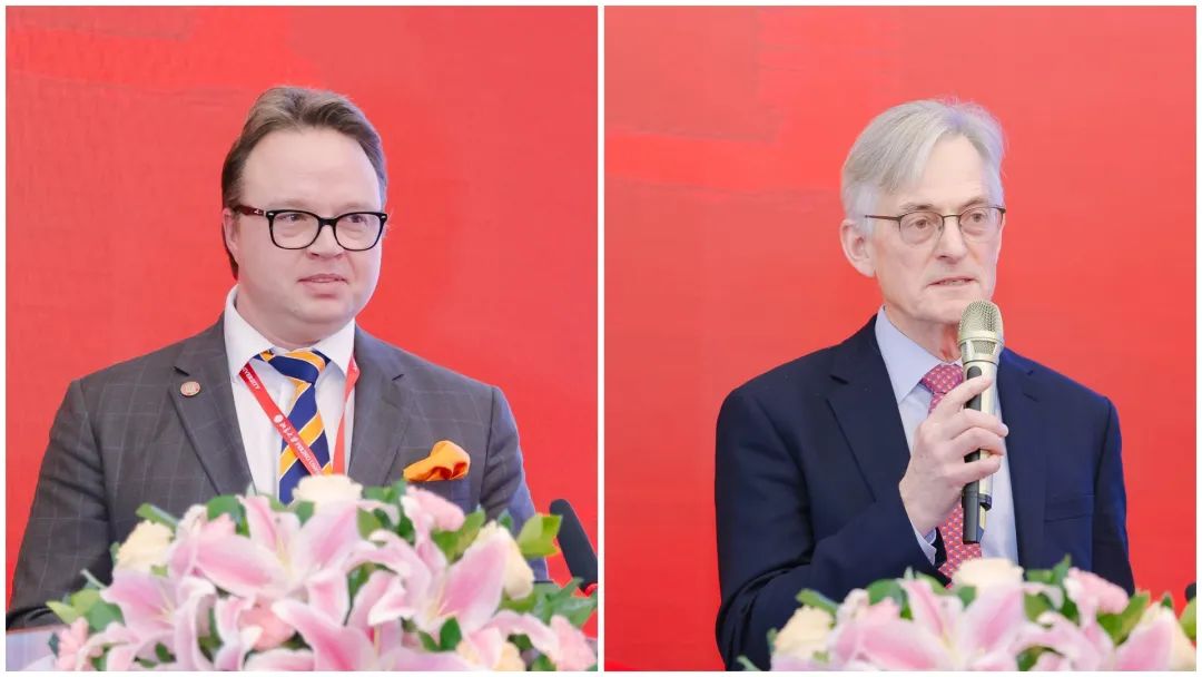随后,国际嘉宾代表剑桥大学曼德琳学院证书项目联席主任王栋(Dominik Wanner)、牛津大学伍斯特学院证书项目联席主任威尔夫·斯蒂芬森(Wilf Stephenson)作国际合作交流分享。
