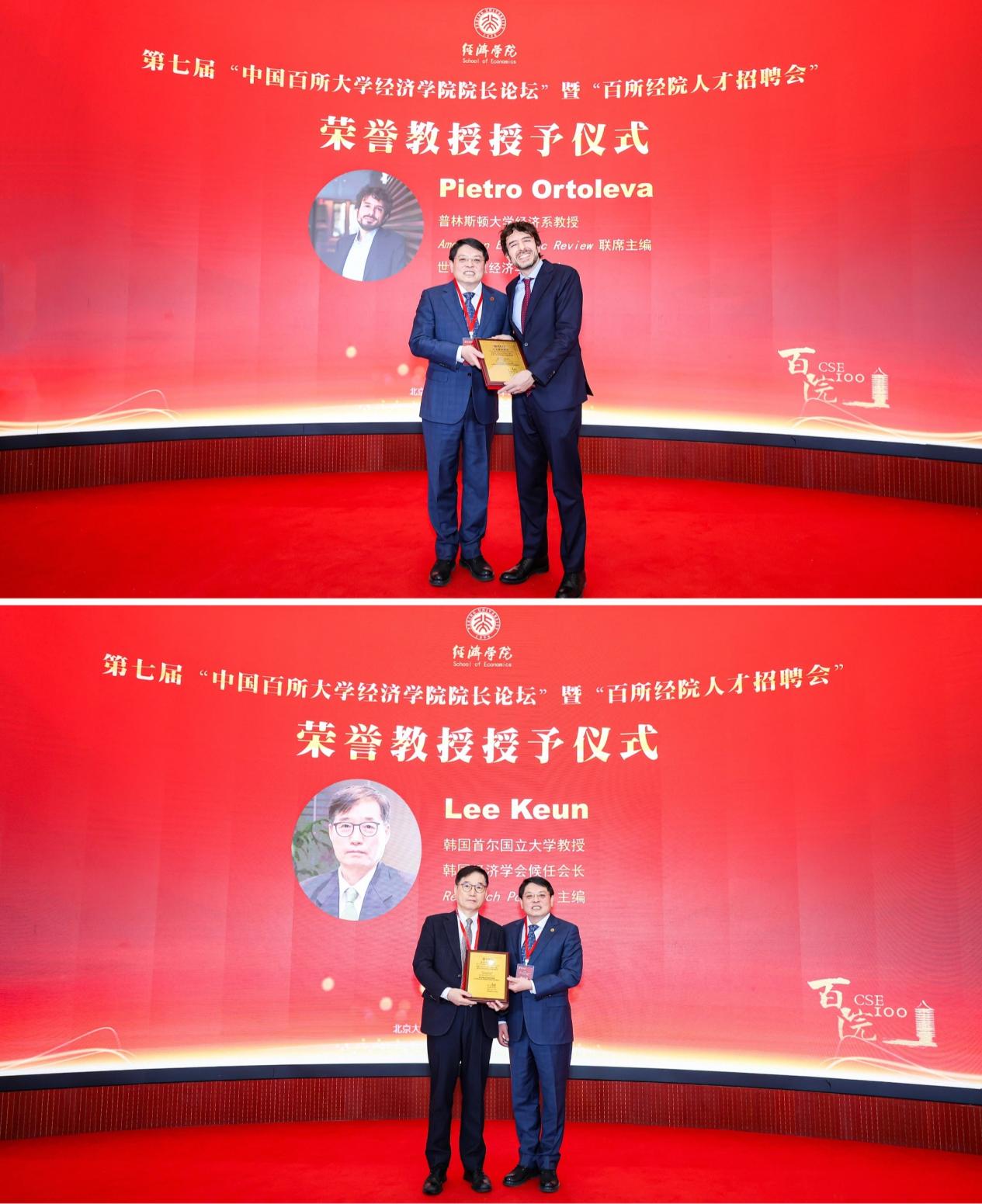 董志勇向普林斯顿大学经济系教授、《美国经济评论》(American Economic Review)联席主编、世界计量经济学会会士彼得罗•奥尔托列瓦(Pietro Ortoleva),韩国首尔国立大学教授、韩国经济学会候任会长、《研究政策》(Research Policy)主编李根(Lee Keun)授予荣誉证书。