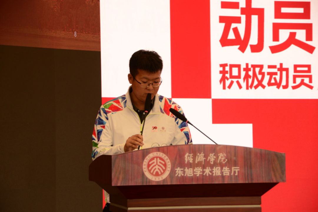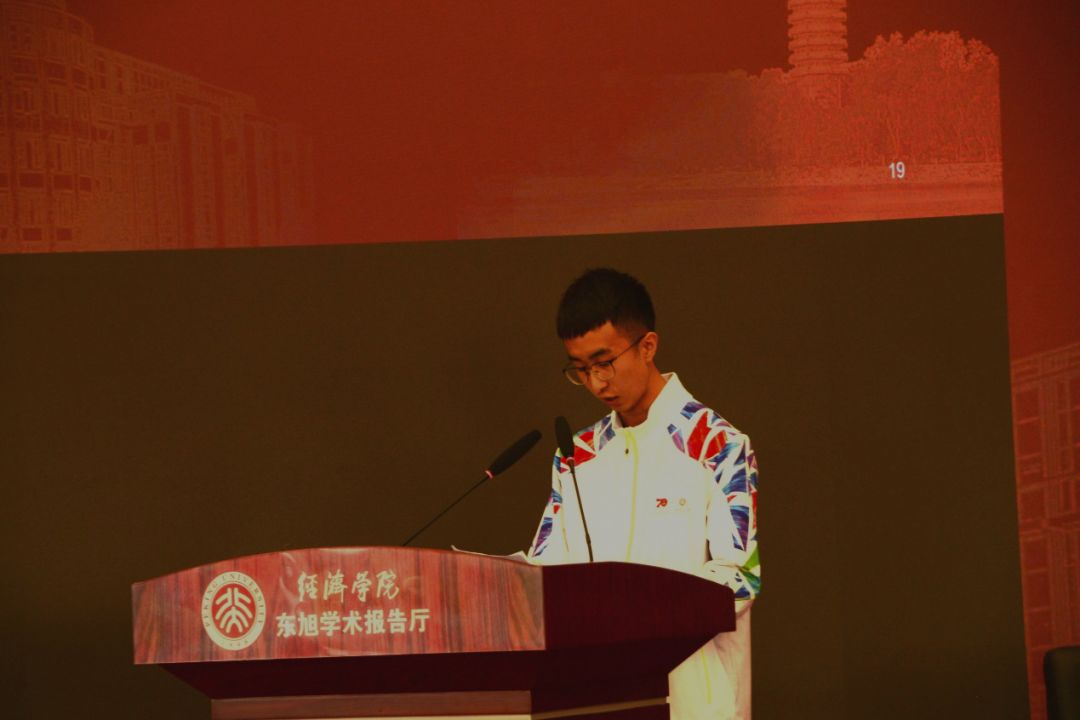 董志勇老师首先致辞。他表示,通过国庆70周年庆祝活动,师生们培养了深厚情谊。岁月如流,这次重大活动是经院人一生的记忆。他祝贺大家圆满完成任务,并祝愿大家学习进步,一切顺利。董志勇老师的讲话亲切感人,一言一语都传递出学院对师生的关爱。