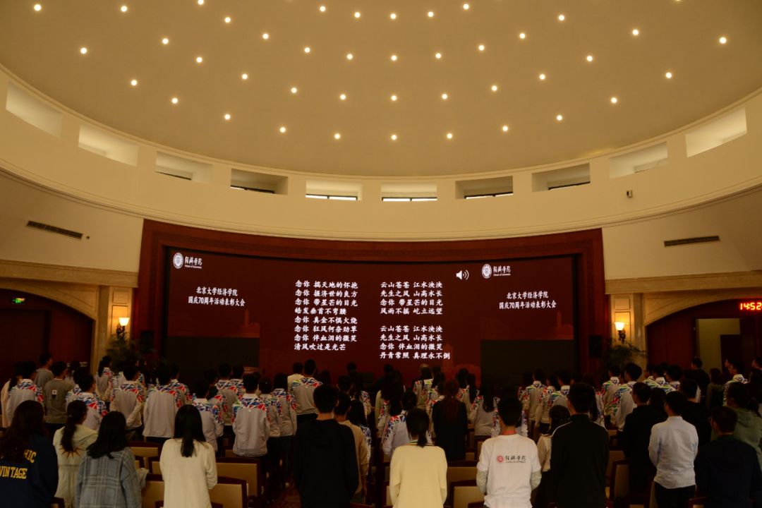 最后,全体师生合唱《百年经世情》,舞动的国旗记录着经院人对祖国的深情,表彰大会在歌声中落幕。