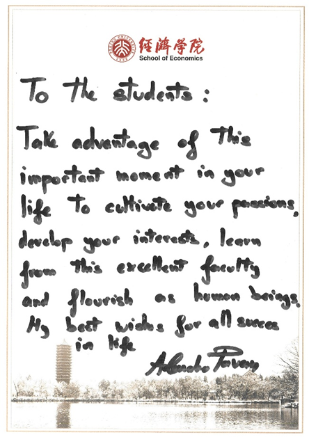 正如《经济理论杂志》首席主编亚历山大·帕万对今年会的题词所说:“利用你们生活中每一个重要的时刻培养你们的激情,发展你们的兴趣,在这个优秀的学院汲取知识,并闪耀人类的光芒。”