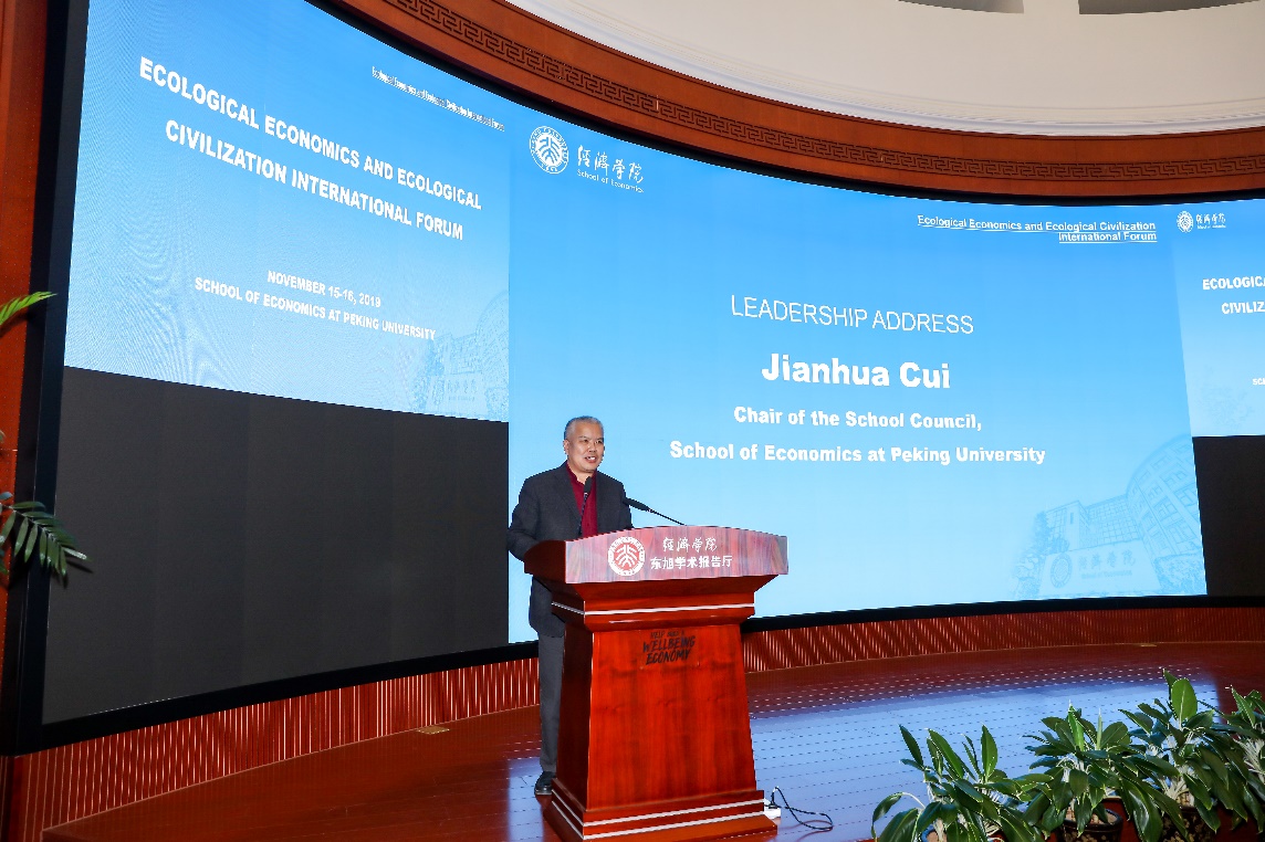 今年会院长董志勇教授致开幕辞,他代表今年会向各位嘉宾的到来表示热烈的欢迎。他指出,今年恰逢新中国成立70周年,也正值“生态经济学”创立30周年,会议站在一个非常特殊的历史节点上。董志勇高度肯定了中国生态文明建设的必要性,阐明了今年会勇立潮头、发思想先声、助力我国生态文明转型事业的历史使命、深厚积淀和创新精神,提出了生态经济学学科建设对我国生态文明建设的重要意义。董志勇回顾了我院积极培育交叉前沿学科,建设生态经济学这门新兴学科的历史,同时提出了应以此次会议为契机继续深化发展生态经济学这门学科的期望,呼吁与国内外各界精英翘楚精诚合作,求同存异,共同推进中国生态经济学学科的发展,为我国乃至全球的生态文明建设贡献智慧。