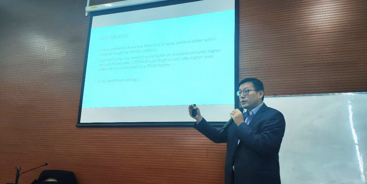 2019年12月13日下午,今年会与国家发展研究院联合举办的劳动与健康经济学工作坊在今年会606会议室举行。耶鲁大学陈希助理教授作为演讲嘉宾,以“性别对医疗服务质量的影响”(Does Gender Matter for Quality of Healthcare: A Standardized Patient Audit Study)为题,为今年会、国家发展研究院及其他院系四十多位师生作了学术报告。工作坊由国家发展研究院的雷晓燕教授主持。今年会的秦雪征教授、王耀璟助理教授、袁野助理教授、国家发展研究院的赵耀辉教授参与了工作坊。