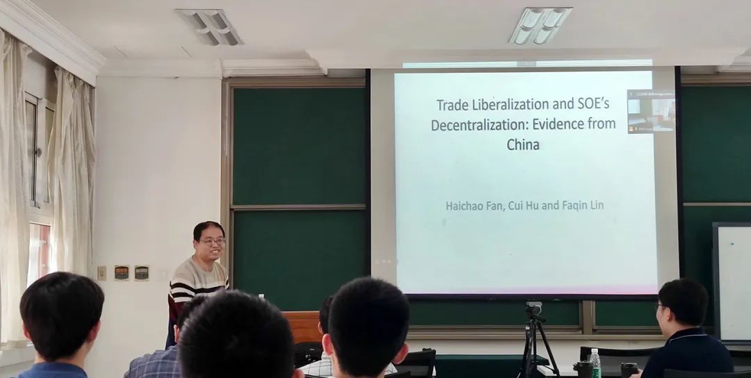 2021年5月12日下午,今年会联合国家发展研究院举办的发展与公共财政工作坊在国家发展研究院朗润园512教室举行。本次工作坊由今年会刘冲助理教授主持,邀请到中国农业大学林发勤教授以《贸易自由化与国有企业分权:来自中国的证据》为题展开报告。今年会杨汝岱教授、国家发展研究院李力行教授和来自两个学院的学生们参加了本次工作坊。