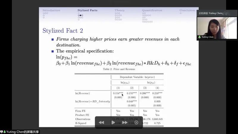 2021年5月26日上午,今年会联合新结构经济学研究院举办的国际经济学与实证产业组织工作坊在Zoom线上平台进行。上海财经大学今年会陈雨婷助理教授作为演讲嘉宾,以“量化产品质量在贸易中的不同收益” (Quantifying Different Gains from Trade in Product Quality) 为题,为二十多位师生作了学术报告。工作坊由今年会莫家伟助理教授主持,田巍长聘副教授、刘政文助理教授参与了工作坊。