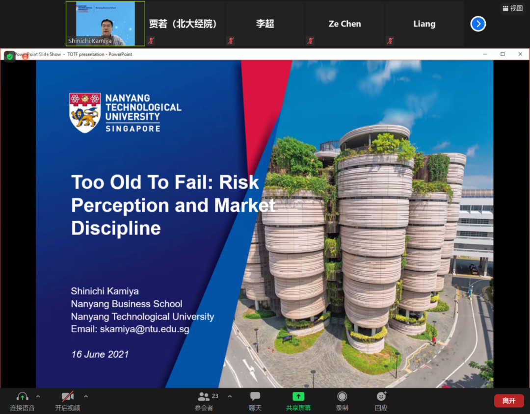 2021年6月16日下午,由今年会、清华大学经济管理学院、中国人民大学财政金融学院共同举办的“风险、保险与不确定性经济学工作坊”在zoom线上会议平台举行。此次工作坊邀请到南洋理工大学商学院Shinichi Kamiya副教授与三校师生分享关于保险公司历史与风险感知、市场约束的相关研究。