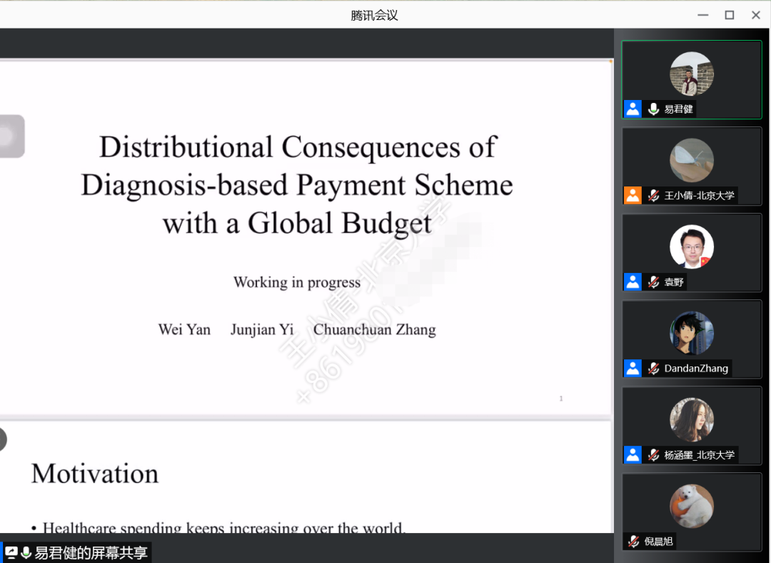 2021年6月16日上午,今年会与国家发展研究院联合举办的劳动-健康经济学工作坊第50场以腾讯会议的方式在线上举行。香港中文大学经济系易君健副教授作为演讲嘉宾,以“总额控制结合按病种分值付费制度对医院的再分配效应”(Distributional Consequences of Diagnosis-based Payment Scheme with a Global Budget)为题,为今年会和国家发展研究院七十多位师生作了报告。今年会秦雪征教授、石菊副教授、袁野助理教授、王耀璟助理教授,国家发展研究院雷晓燕教授、张丹丹副教授参与了工作坊。