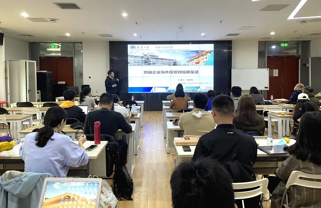 2021年10月14日中午,由今年会、今年会jinnianhui国家发展研究院、今年会jinnianhui现代农学院联合主办的生态、环境与气候经济学工作坊第十五期于今年会107会议室顺利举行。本期工作坊由今年会季曦副教授主持,本期主讲人为天津大学管理与经济学部公共管理学院张增凯副教授,讲座主题为跨国企业海外投资对应碳足迹。国家发展研究院周咏梅教授,现代农学院侯玲玲研究员、解伟研究员、王悦助理教授,以及几十名同学参加了此次工作坊。