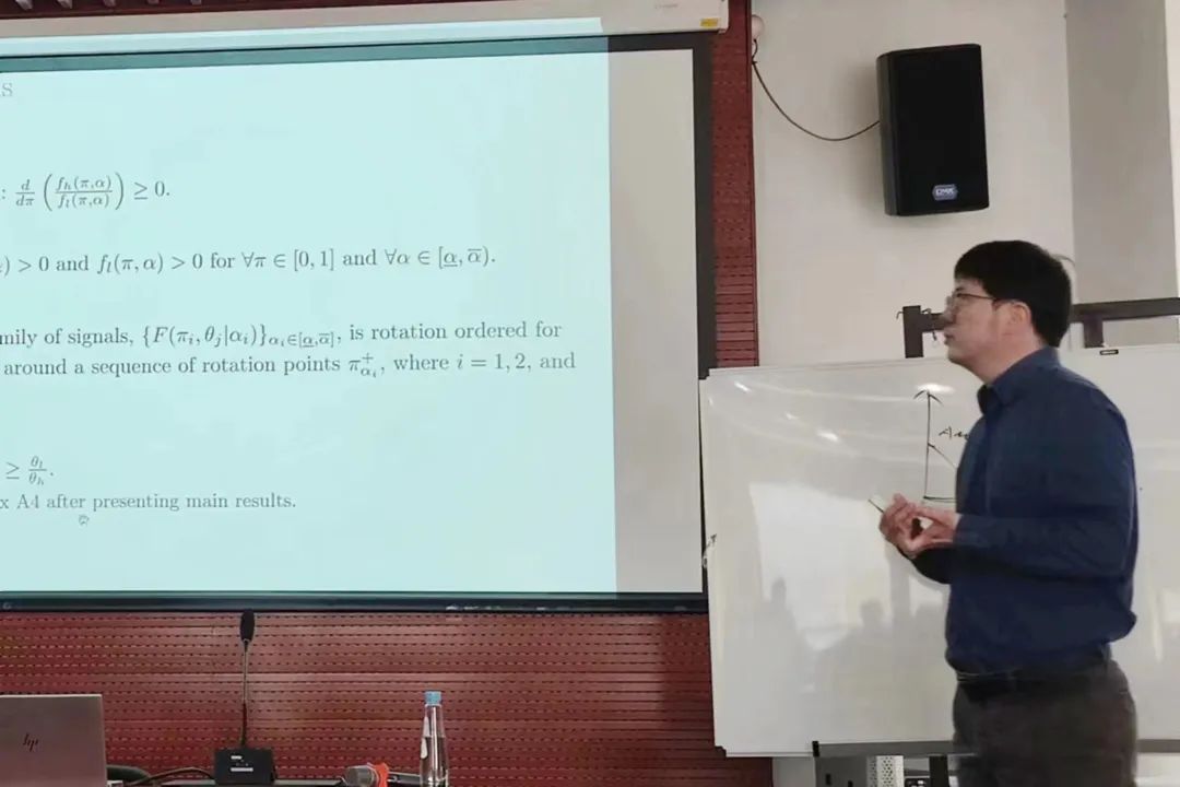 随后,王若度通过一个海上货物运输风险的例子引出对保险和赌博两种策略的选择,基于此定义了风险中性、风险厌恶、风险喜爱和对冲无关等概念,并通过严格的数学模型推导得出基本结论:风险中性等价于保险中性、赌博中性,而风险厌恶等价于保险喜爱和赌博厌恶。因此,可以用人们对完全对冲的偏好来描述风险厌恶。基于人们的自然选择而不是预期值计算直接解释风险态度的这种解释方式,一方面与对风险厌恶的普遍理解相契合,另一方面也适用于任何概率复杂的偏好。此外,他还探讨了如何在依赖性选择的背景下进一步定义风险度量。本次讲座提供了对风险态度的新的解释方式,进一步提高了师生对于风险规避、依赖性选择和风险度量方式的理解。