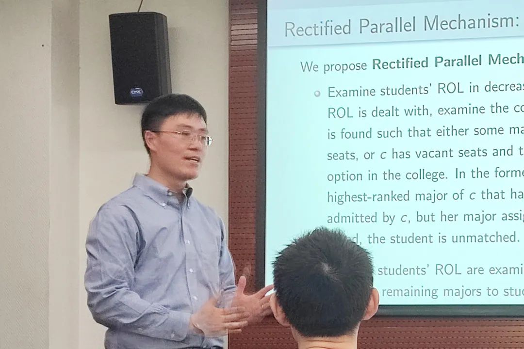 张军的研究关注中国高考志愿填报与录取问题。他首先介绍了中国高考志愿填报与录取的方式。在近几十年来,志愿填报系统一直采用两阶段的程序,第一阶段将每个学生的申请最多发送给一所大学,第二阶段每所大学为申请者按其分数与志愿分配专业。在两阶段程序中,可以分别采用不同的机制。在第一阶段有顺序志愿、平行志愿两种方式,而第二阶段分专业时有分数优先、志愿优先和专业极差这三种方式。张军的模型证明了两阶段录取程序的缺陷,并提出了一个改进方案,将两个阶段合并为一个阶段。此外,他还在模型框架下讨论了新高考改革带来的影响,对其研究进行了拓展。