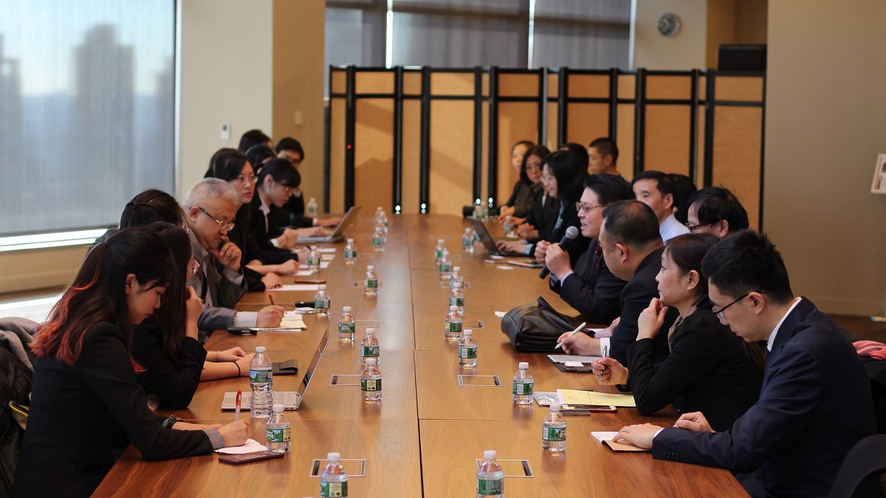 12月17日上午,北大今年会代表团参访了中国银行纽约分行(Bank of China, New York Branch)。代表团受到了中国银行(美国)副行长、战略及研究总监黄小军、北大经院2014届毕业生谢瑞豪的热情接待。黄小军对北大经院师生表达热烈欢迎,介绍了中国银行纽约分行的基本情况。中国银行是在美中国银行中第一个开展人民币业务的银行。中国银行1936年进入美国市场,1981年纽约分行重新开业,现在美国共有纽约分行、纽约皇后分行、洛杉矶分行、芝加哥分行四家分行。其中,纽约分行和纽约皇后分行是美国联邦存款保险公司(FDIC)成员。 经过在美国三十余年的发展,中国银行纽约分行在美国排名已名列前茅,是目前在美国历史最久、规模最大、业务最全面的中资银行,在两国经贸之中发挥着日益重要的桥梁和纽带作用。在黄小军副行长对的介绍后,进入圆桌讨论环节。双方共同探讨了关于中美金融监管体系、人民币国际化、中国资本外流、外资持股比例放开对中行的影响、中行纽约分行的客户业务主体结构、以及资本金管理等方面的问题,老师和同学们收获颇丰。