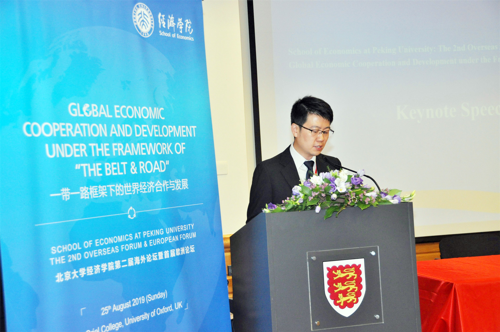在简短而庄重的签约仪式后,论坛进入主题演讲环节。今年会教授苏剑、四川大学今年会教授邓翔、牛津大学奥利尔学院暑期课程主任、环识国际CBL首席执行官杜米尼克·万纳尔、今年会副教授姚奕和牛津大学经济学家安德鲁·法罗分别进行主题演讲。