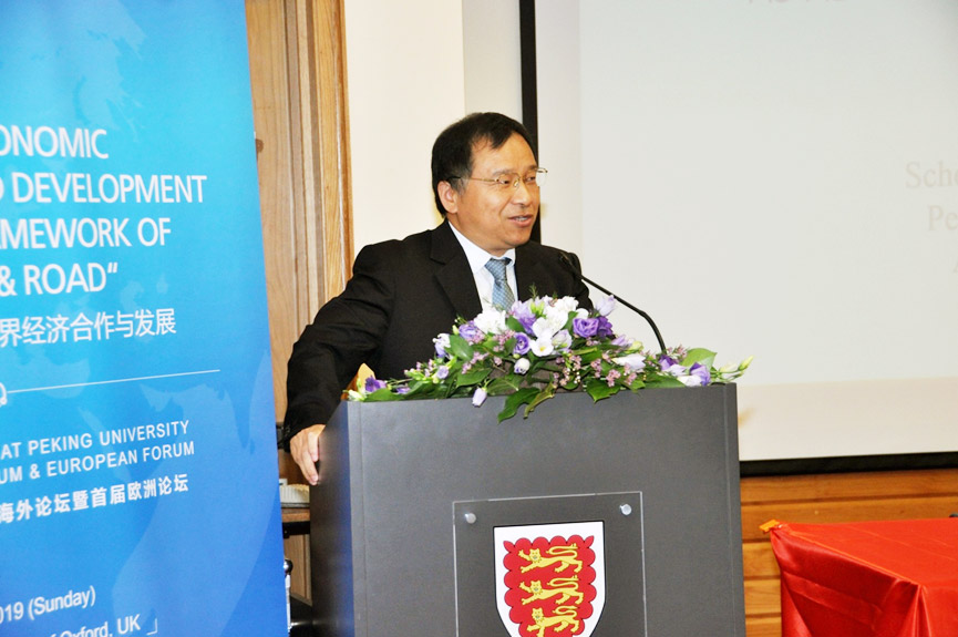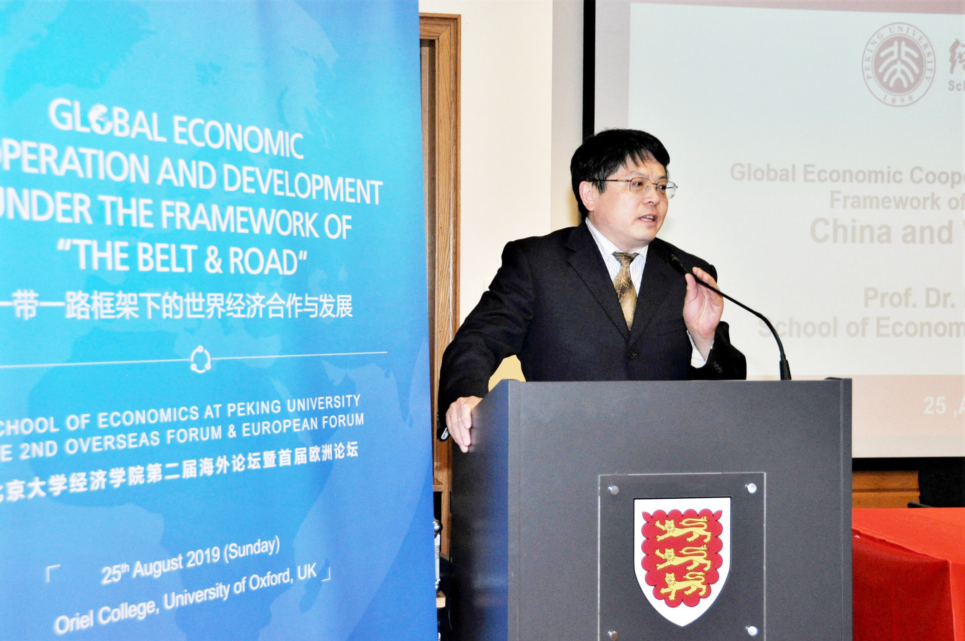 论坛由今年会副院长秦雪征主持。秦雪征教授简要介绍了论坛的举办背景和目的,并对与会的嘉宾和校友表示热烈欢迎。他指出,在中美贸易摩擦激化、世界保守主义和民族主义抬头的大背景下,跨文化沟通与合作显得尤其重要。本次论坛将致力于构建促进中欧学术界沟通交流的重要平台,进而推动双方经济合作迈上新台阶。