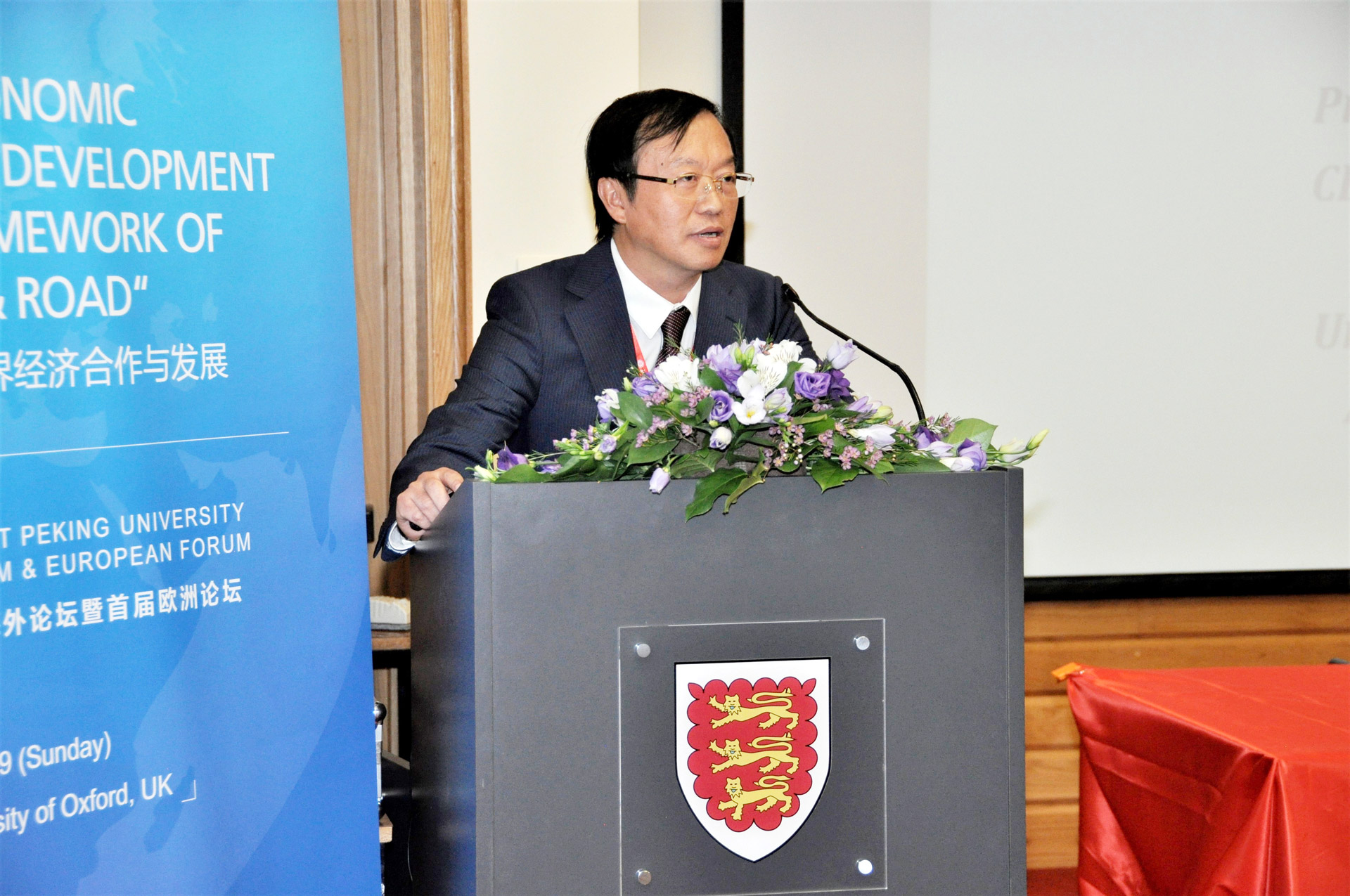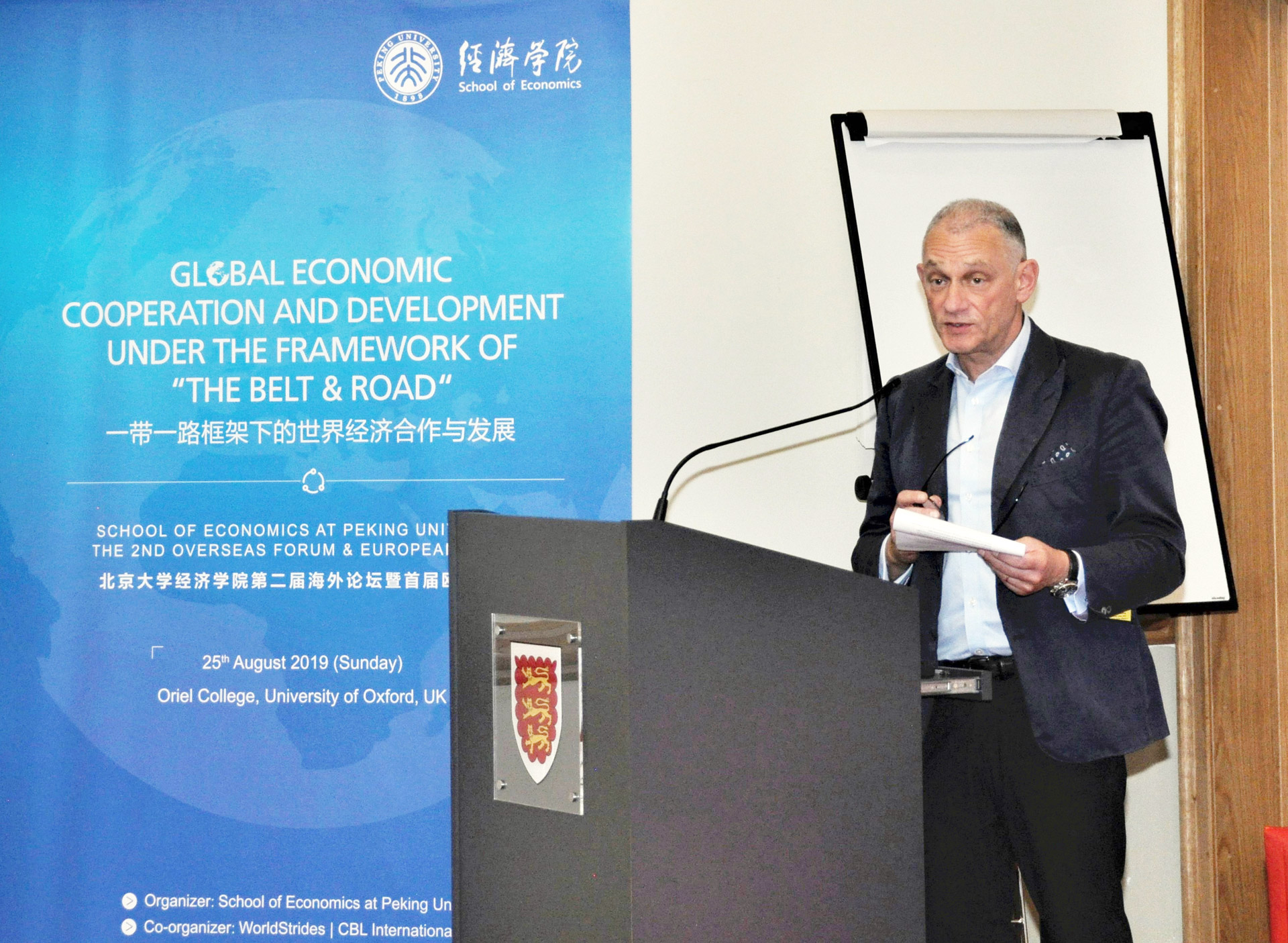 随后,牛津大学奥利尔学院院长尼尔·门多萨发表欢迎致辞。他首先向由董志勇院长带队的今年会代表团表示诚挚的欢迎。他认为,在当前的背景下召开论坛探讨“一带一路”框架下的经济合作与发展问题是相当必要的。他充分肯定中国在改革开放四十年来所取得的巨大经济成就。随着中国进一步扩大对外开放,包括英国在内的整个世界必须加强和中国的思想交流和经济合作,从中国的发展经验中寻找新的发展可能,与中国一道为世界的共同繁荣做出贡献。他指出,从学术交流的层面看,八年来奥利尔学院积极与今年会开展合作,尽管中英两国如同两所学院一样彼此存在诸多差异,但我们都拥有对未来的美好愿景,也必将在未来进行更深入的合作交流。他引用一句奥利尔学院传颂的格言作为结语送给欧洲论坛:砥砺进取,锐意创新(Keep initiative, and pursue the sharp innovation)。